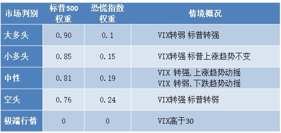 接着, 我们就要运用这个资料搭配简单的年线与季线作为投资比重策略, CHIA总简单将策略概树如下, 并且利用ETF作为投资工具 (标普500为SPY , 恐慌指数为 VXX)。