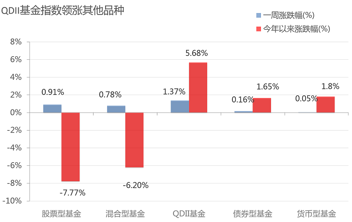 上周权益类基金多数飘红,70% 以上基金实现正收益,其中股基加权指数涨 0.91%,混基加权指数涨 0.78%;上周资金面总体平稳,加上转债基金受 A 股提振,债基指数涨 0.16%;香港股市表现亮眼,QDII 基金指数涨1.37%。