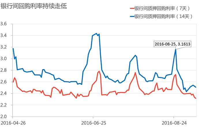 上周国内资金面总体平稳,央行在公开市场净回笼 1500 亿元,同时9月7日对 15 家金融机构开展 MLF 操作 2750 亿元,意在对冲公开市场净回笼;利率方面,Shibor 周内涨跌分化,隔夜涨 1.9 个基点,但 2 周及期限更长利率均小幅下跌;银行间市场回购品种 7 天报收 2.3%,较前周跌 8 个基点,14 天相反涨 7 个基点;10 年期国债收益率上涨 2.26 个基点至 2.76%,债市短期仍面临调整压力。