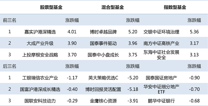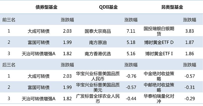 近一周各类型基金涨跌幅前三名(单位:%,2016.9.2-2016.9.7)