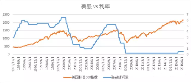 从1990年开始, 美国出现过三次升息周期(1994年 - 1995年、1998年 - 2000年、2004年 - 2006年)每次升息对于股市都有提升作用。2015年年底美国宣布升息,确实造成2016年1月份的较大回撤,但紧接着于2016年8月份再创新高,和之前三次的走势如出一辙。因此中长期的投资者对于未来升息带来的的短期大可不必过度担心。