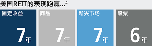 股本型REITs长期表现稳固,且较其他资产为佳。