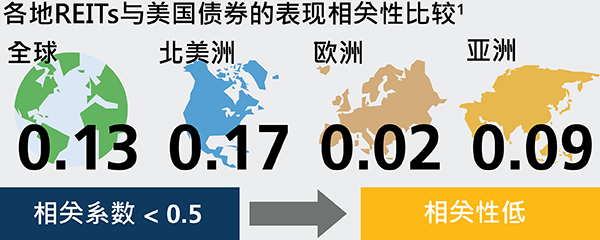 REITs的表现与投资级别债券的相关性低,因此可在混合资产投资组合中,发挥分散风险及改善风险/回报水平的功能。